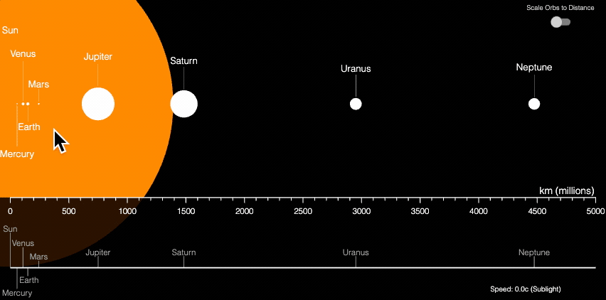 Use a plot that can be panned and zoomed to explore the scale of the planets in the solar system.