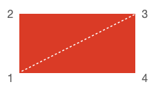 Therefore, to draw the same rectangle we would draw the first point 1, then complete the first triangle with 2 and 3. Then we would draw point 4 to make the second triangle with points 1 and 3.