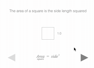 text: 'The area of a square is the side length squared',