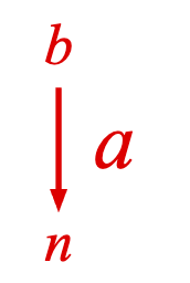 figure.add({ make: 'equation', elements: { arrow: { symbol: 'arrow', direction: 'down' }, }, forms: { form1: { annotate: { content: 'a', glyphs: { left: { symbol: 'arrow', space: 0.05, overhang: 0.1, annotations: [ { content: 'b', xPosition: 'center', yPosition: 'top', xAlign: 'center', yAlign: 'bottom', scale: 0.7, offset: [0, 0.05], }, { content: 'n', xPosition: 'center', yPosition: 'bottom', xAlign: 'center', yAlign: 'top', scale: 0.7, offset: [0, -0.05], }, ], }, }, }, }, },});