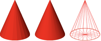 // Wire mesh conefigure.add({ make: 'cone', radius: 0.2, normals: 'curve', sides: 20, color: [1, 0, 0, 1], line: [[0, 0, 0], [0, 0.5, 0]], lines: true,});@interface Copy